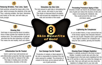 Collagen is naturally produced in the body to keep it flexible. It enables smooth skin and shiny hair. The collagen level in the body starts depleting from the age of 25 and this is when you notice the changes on your skin. Skin care with gold can slow down the depletion of collagen level in your skin cells.